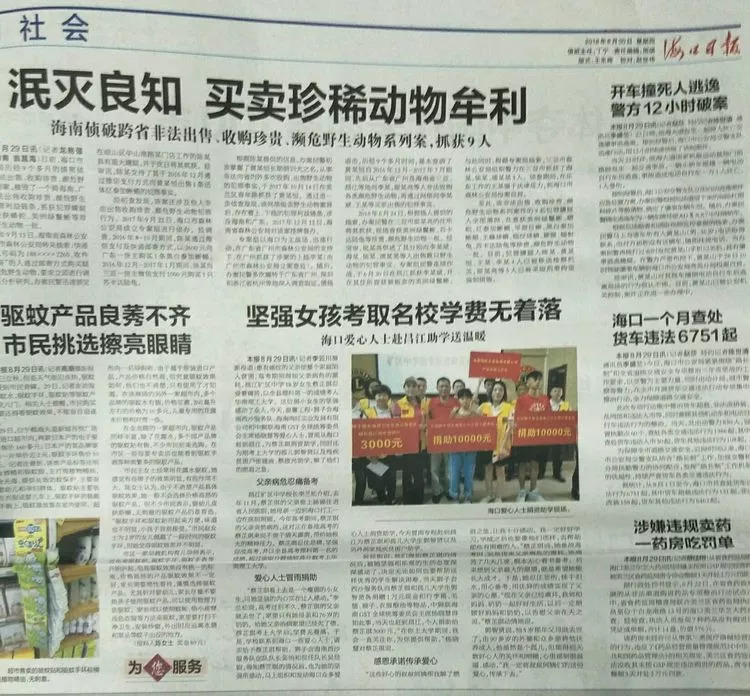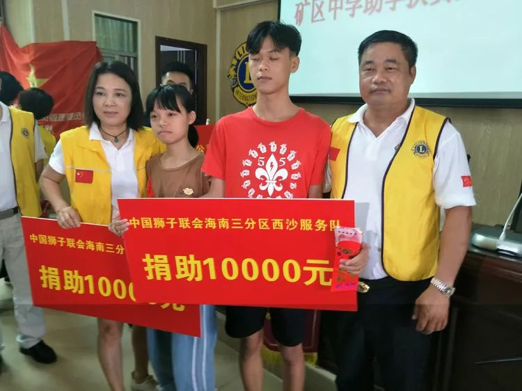 愛心人士冒雨捐助 “蔡芷琪看上去是一個(gè)瘦弱的小女生,可她堅(jiān)強(qiáng)的內(nèi)心實(shí)在讓人感動?!崩钐m松說,高考過后不久,蔡芷琪的父親就去世了,家里只有她母親和76歲的奶奶。給她父親治病家里已經(jīng)欠了債,蔡芷琪考上大學(xué)后,學(xué)費(fèi)無著落。于是,學(xué)校聯(lián)系到??谝恍坌娜耸?,請求給予蔡芷琪幫助。海南西沙服務(wù)隊(duì)創(chuàng)隊(duì)隊(duì)長吳怡和現(xiàn)任隊(duì)長吳經(jīng)銳,得知蔡芷琪的情況后,也為她的堅(jiān)強(qiáng)所感動,馬上組織和發(fā)動??诒姸鄲坌娜耸烤栀Y助學(xué),今天冒雨專程趕到昌江為蔡芷琪和孤兒大學(xué)生郭智賢以及另外兩家殘疾貧困戶助學(xué)。吳經(jīng)銳說,他們得知蔡芷琪的情況后,被她堅(jiān)強(qiáng)和樂觀的生活態(tài)度深深感動了,決定無論如何也要幫助這樣優(yōu)秀的學(xué)生解決困難,當(dāng)天獅子會西沙服務(wù)隊(duì)向蔡芷琪和孤兒大學(xué)生郭智賢各捐贈1萬元現(xiàn)金和行李箱、毛毯、被子、衣服糧油等物品,中獅聯(lián)海南GST全球統(tǒng)籌委員會主席楊曉慧得知此事,當(dāng)天也趕到昌江,個(gè)人捐助給蔡芷琪3000元;他們西沙服務(wù)隊(duì)同時(shí)給兩家貧困戶各捐贈3000元現(xiàn)金和糧油等生活物?!霸谀闵洗髮W(xué)期間,我會一直關(guān)注你,為你提供幫助。”楊曉慧對蔡芷琪說。